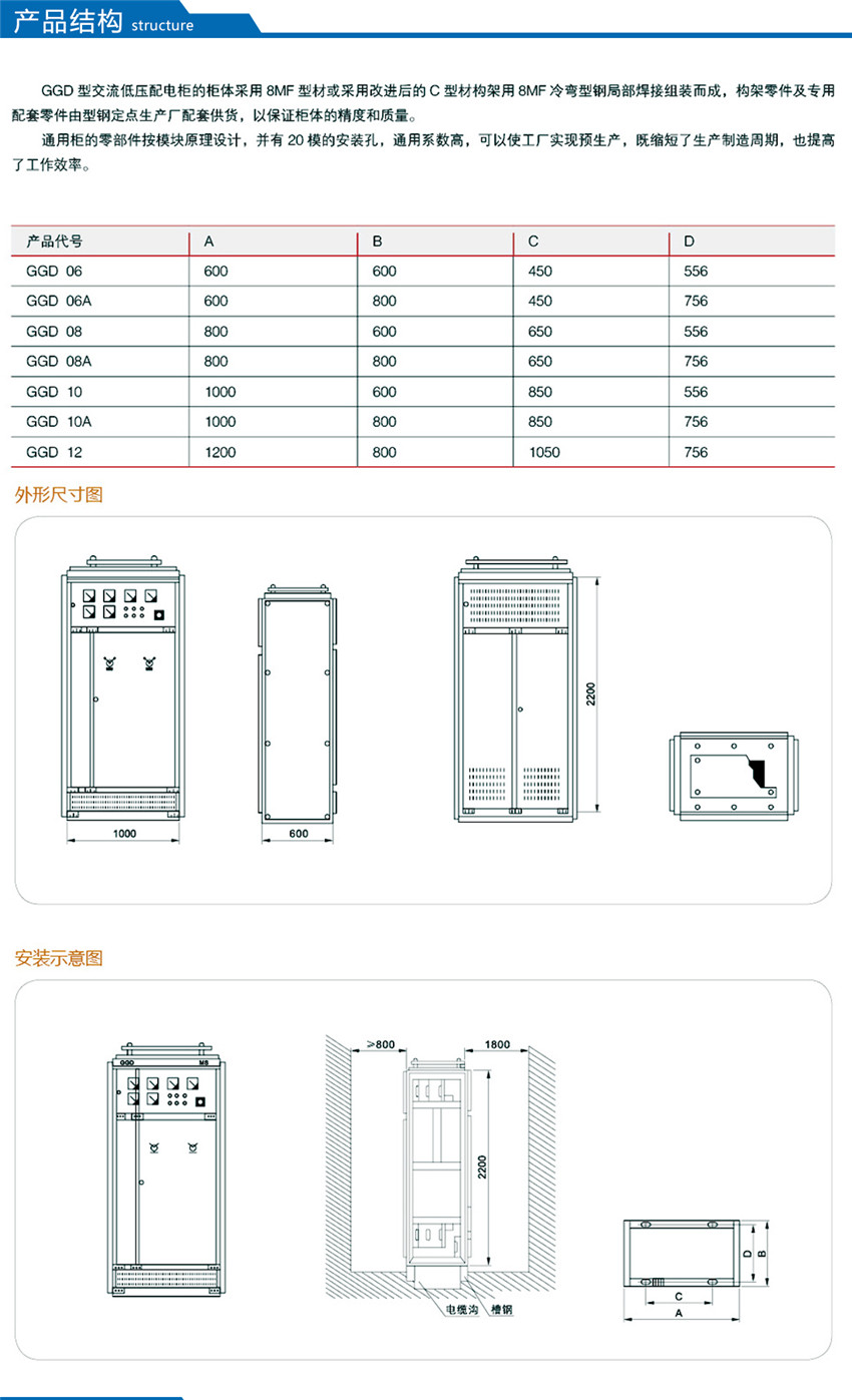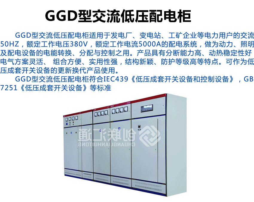 GGD型交流低壓配電柜是根據(jù)能源部主管上級(jí),廣大電力用戶及設(shè)計(jì)部門的要求,本著安全、經(jīng)濟(jì)、合理、可靠的原則設(shè)計(jì)的新型配電柜。產(chǎn)品具有分?jǐn)嗄芰Ω?,?dòng)熱穩(wěn)定性好,電氣方案靈活、組合方便,系列性、實(shí)用性強(qiáng),結(jié)構(gòu)新穎、防護(hù)等級(jí)高等特點(diǎn),可以作低壓成套開關(guān)設(shè)備的更新?lián)Q代產(chǎn)品使用。并且廣泛適用于發(fā)電廠、變電所、工業(yè)企業(yè)等電力用戶作為交流50HZ,額定工作電壓380V,額定電流至3150A 的配電系統(tǒng)中作為動(dòng)力,照明及配電設(shè)備的電能轉(zhuǎn)換、分配與控制之用。該產(chǎn)品分?jǐn)嗄芰Ω?,額定短結(jié)構(gòu)新穎等特點(diǎn)。該產(chǎn)品是我組裝式、固定面板開關(guān)柜的代表產(chǎn)品之一。