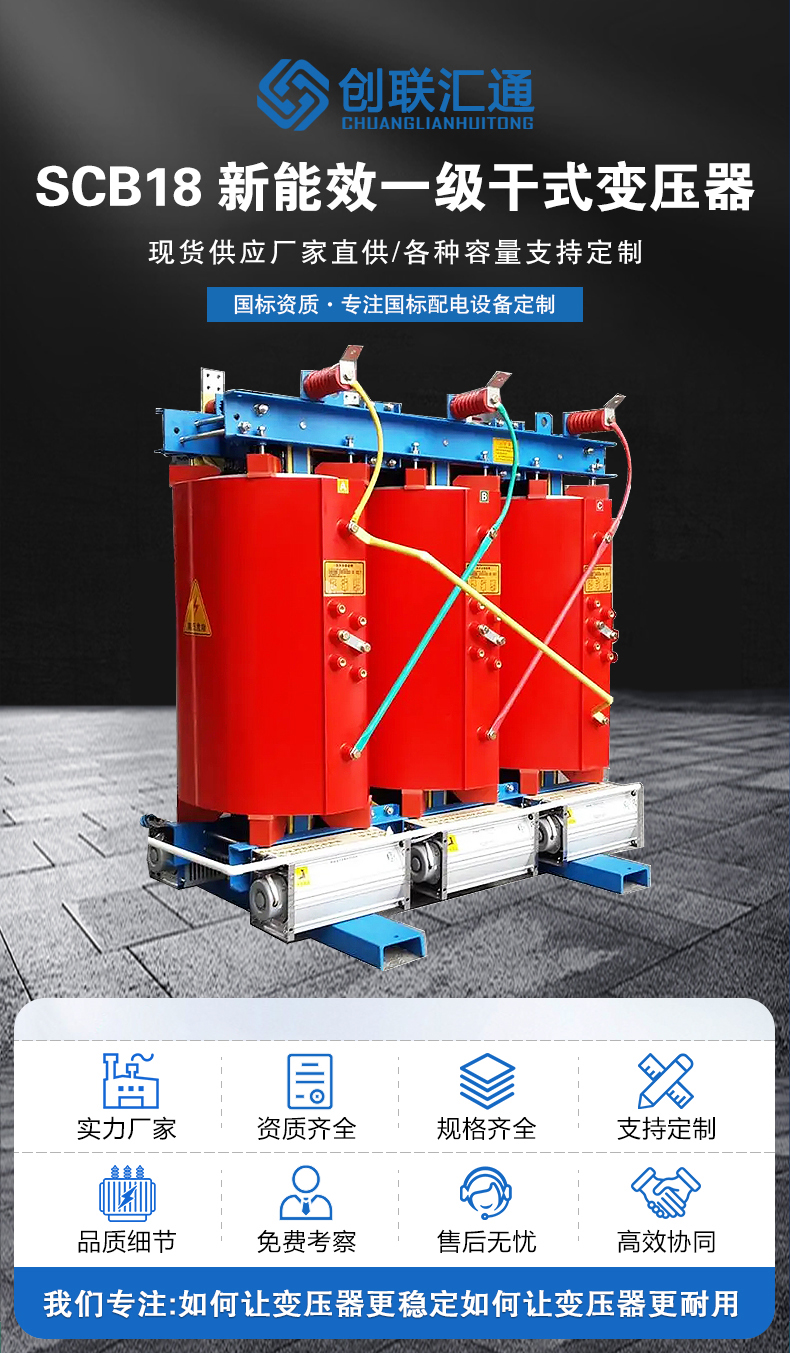 SCB18變壓器滿足一級能效,相較于傳統(tǒng)的SCB12干式變壓器,空載損耗降低30%,負載損耗降低10%左右,因此SCB18型變壓器最大的優(yōu)勢便是節(jié)能。