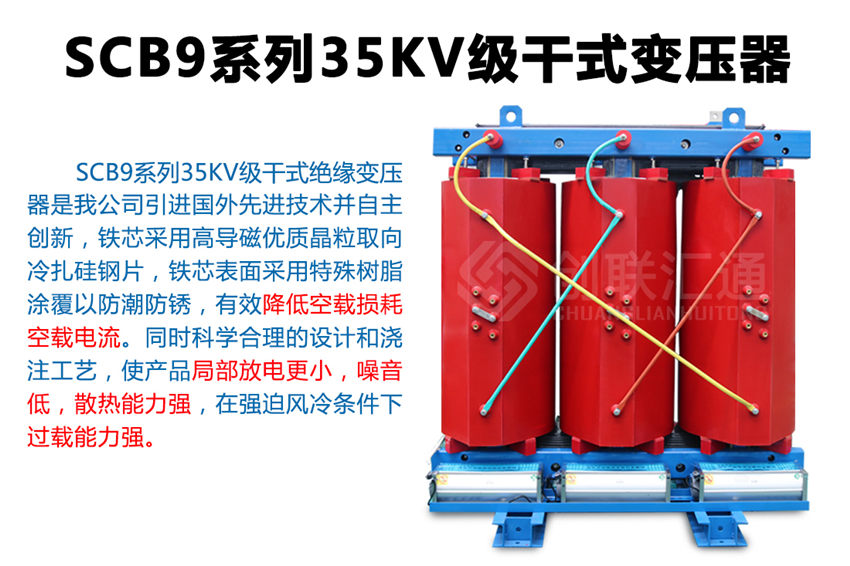 SC(B)9系列35KV環(huán)氧樹脂干式變壓器新一代節(jié)能產(chǎn)品,該系列配電變壓器產(chǎn)品使用在變壓器電壓直接從35KV電網(wǎng)轉(zhuǎn)變?yōu)?00V配電的特殊場合,可減少10KV輸變電環(huán)節(jié),使運(yùn)行維護(hù)費(fèi)用明顯降低。35KV級無勵(lì)磁調(diào)壓配電變壓器產(chǎn)品通過了家級鑒定,確立為高新技術(shù)產(chǎn)品。 產(chǎn)品具有損耗低、阻燃性好、承受短路能力強(qiáng)、體積小、噪音低、耐雷電沖擊性能好,溫度分布均勻等優(yōu)點(diǎn),而且由于環(huán)氧樹脂干式變壓器不使用變壓器油,不會產(chǎn)生油污染,無爆炸危險(xiǎn)。產(chǎn)品可作為配電變壓器廣泛適用于電力系統(tǒng)城網(wǎng)改造,也可用于高層建筑、機(jī)場、車站、港口、地鐵待對消防、環(huán)保有嚴(yán)格、特殊要求的多種場合。