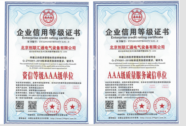 近日,倍受業(yè)內(nèi)關(guān)注的2018年度中AAA級重質(zhì)量守信用企業(yè)復(fù)審在北京落幕,中市場監(jiān)測中心聯(lián)合中市場研究中心等多家機(jī)構(gòu)以及企業(yè)評審委員會組織專家對申報復(fù)審的中AAA級重質(zhì)量守信用企業(yè)等殊榮進(jìn)行綜合評價。北京創(chuàng)聯(lián)匯通電氣設(shè)備有限公司經(jīng)中產(chǎn)業(yè)質(zhì)量調(diào)查評價中心、中企業(yè)信用評價管理中心等機(jī)構(gòu)審核,再次被評為“中AAA級信用企業(yè)”榮譽稱號。