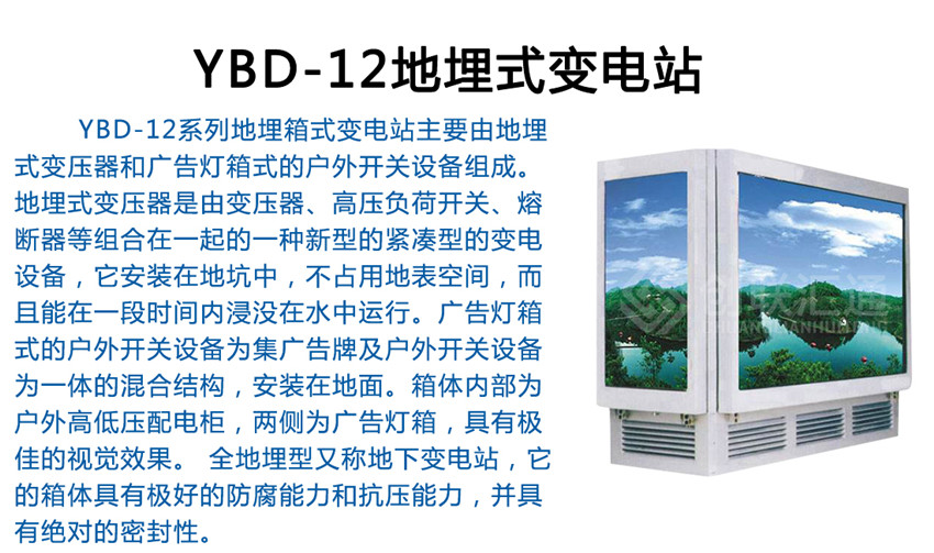 YBD-12系列地埋箱式變電站(簡稱地埋式箱變),是在充分研究和探討現(xiàn)代城市建設(shè)和管理的基礎(chǔ)上,新開發(fā)出的新一代箱式變。其主體部分或全部埋入地下,占地很少,甚至不占地,視覺效果非常好,有效解決了城市用地緊張和城市牛皮癬的矛盾,與周邊環(huán)境和諧統(tǒng)一,備受廣大專家和用戶的推崇。地埋箱式變電站是指該箱式變電站的成套裝置全部安裝于一個全密封的箱體內(nèi)部并把整體設(shè)制于地平面以下,它和地面上箱式變電站,內(nèi)部設(shè)備是相同的,同樣是由10KV輸入電壓經(jīng)變壓器降為400/220V配電電壓再送配至使用負(fù)荷點,可用于環(huán)網(wǎng)配電系統(tǒng),也可作為放射式電網(wǎng)終端供電的變電站。這種全地埋型又稱地下變電站,它的箱體具有極好的防腐能力和抗壓能力,并具有絕對的密封性。